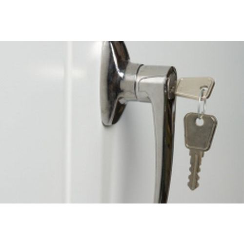 Deur, kop, achterkant, dak en bodem zijn in zogenaamde sandwichconstructie, met tussenisolatie.