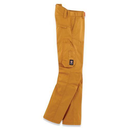 Lichte chinobroek met steekzakken, zak voor een rolbandmaat aan de rechterkant met ruimte voor een pen, verborgen zak aan de linkerkant, opgestikte zak linksachter en zak met rits rechtsachter. Geïntegreerde grofkorrelige ceintuur Orange Parade met kunststof YKK-gesp met driekleurige doorgang voor. Coupenaden voor en bij de knieën voor gemak en bewegingsvrijheid. Oprolbare onderkant met driekleurige afwerking. Verhoogde ceintuur in de rug met Parade Orange-logo in het midden. Gulp met metalen YKK-ritssluiting.