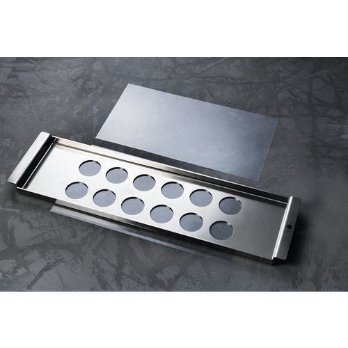 Set bestaande uit een geperforeerde plaat en een reservoir/bakje voor chocolade.