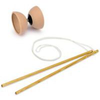 - Met deze rubberen diabolo en houten stokken ben je klaar voor het circus.