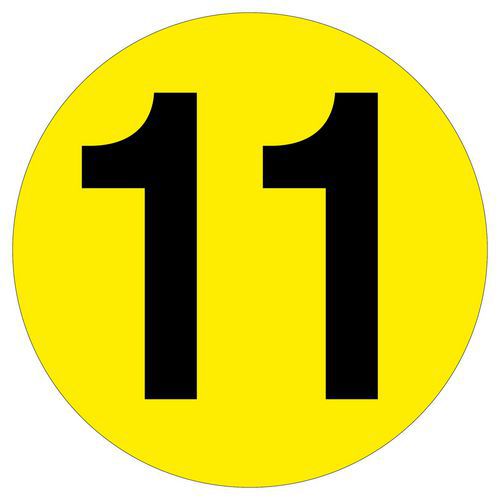 Cirkel voor vloermarkering, Materiaal: Vinyl, Breedte: 190 mm, Kleur: Geel, Model: Cijfer, Opdruk: 11