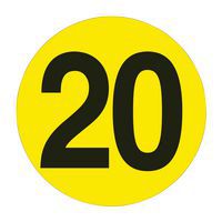 Cirkel voor vloermarkering, Materiaal: Vinyl, Breedte: 190 mm, Kleur: Geel, Model: Cijfer, Opdruk: 20