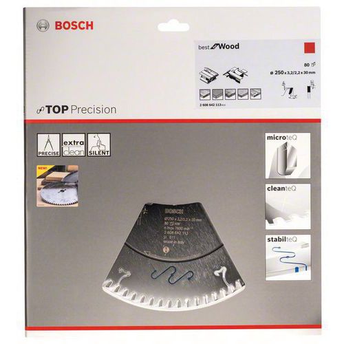 Cirkelzaagblad Laminated Panel Abrasive, Asgat Ø: 30 mm, Ø: 25 cm, Aantal tanden: 80, Snijbreedte: 3.2 mm