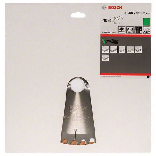 Cirkelzaagblad Optiline Wood, Asgat Ø: 30 mm, Ø: 25 cm, Aantal tanden: 40, Type nr.: 2608640728