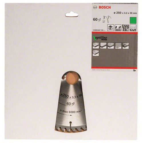 Cirkelzaagblad Optiline Wood, Asgat Ø: 30 mm, Ø: 25 cm, Aantal tanden: 60, Type nr.: 2608640729