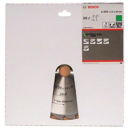 Cirkelzaagblad Optiline Wood, Asgat Ø: 30 mm, Ø: 25.4 cm, Aantal tanden: 24, Type nr.: 2608640434