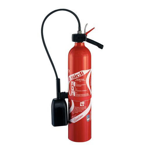 - Doeltreffend voor vuur van klasse B (vloeistoffen of vloeibaar wordende vaste stoffen) en voor brand van elektrische oorsprong.