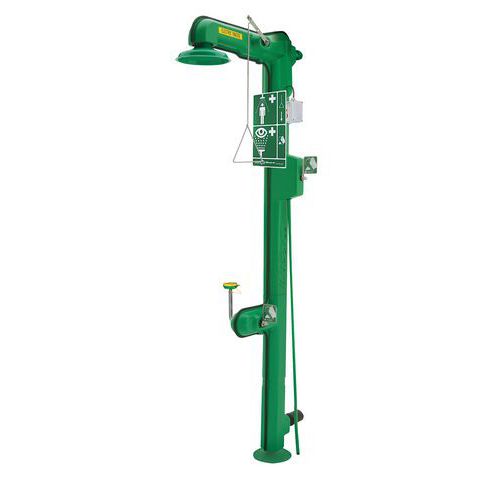 - Combinatie van douche/oogdouche automatische lediging op kolom, voor buiten.