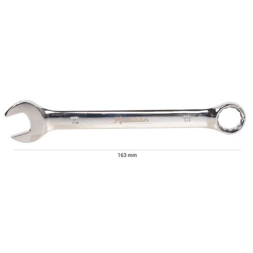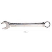 Standaard combinatiesleutel, metrisch (in mm). Gesmeed chroom-vanadiumstaal. Ideaal voor alle veelvoorkomende toepassingen. Sleutel bestaande uit 2 koppen met dezelfde opening, voor snel blokkeren. Kop in een hoek van 15° voor een eenvoudige hantering op een vlak oppervlak. Gepolijste vorm voor meer comfort en een betere grip. Glanzend gepolijste afwerking.