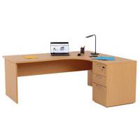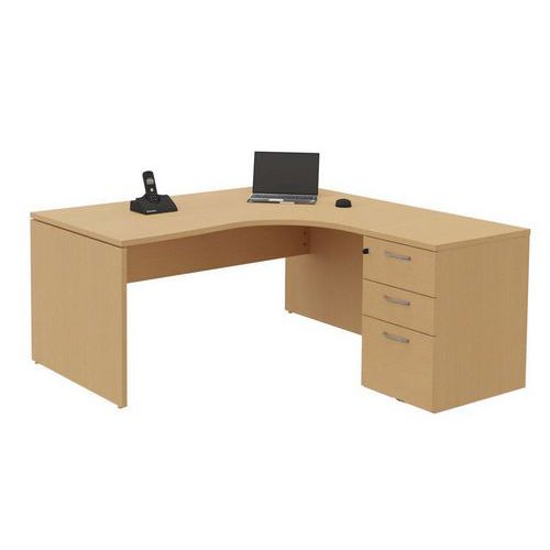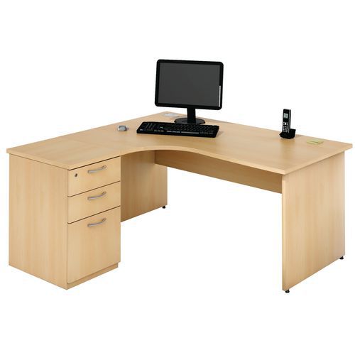 Compact bureau met ladeblok - Onderstel met wangen - Beuken - Manutan Expert