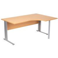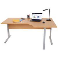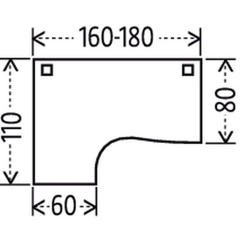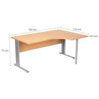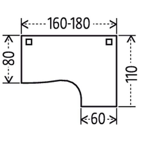 Compact bureau, ontworpen voor computerwerk. Verkrijgbaar met retour rechts of links. Bladen van gemelamineerde panelen met een dikte van 25 mm, met antireflectie- en antikrasbehandeling, en met antibacteriële eigenschappen. Bladen met 1 afsluiter, diam. 80 mm, voor het doorvoeren van kabels naar het onderstel. Het metalen onderstel is gemonteerd tegen een frontpaneel dat deel uitmaakt van de constructie, met afneembare sierdelen voor de doorvoer van kabels. Ideaal voor thuiswerken. Zet uw beeldscherm op comfortabele werkafstand op het diepe bureaublad. Kwaliteit E1, dichtheid 650 kg/m³. Schokbestendige randen van ABS, 2 mm.