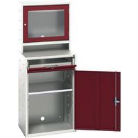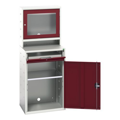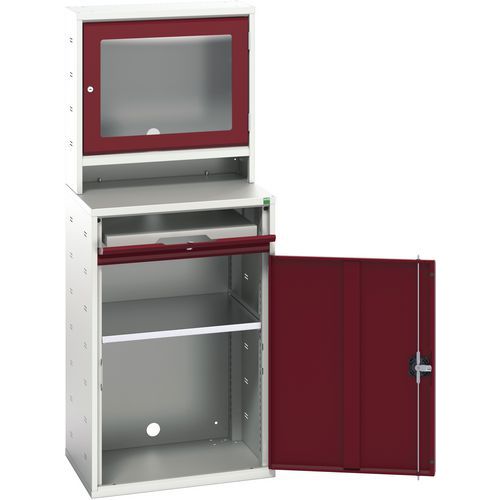 De interne afmetingen van de monitorkast zijn 640 mm breed, 540 mm hoog en 220 mm diep. Wanneer de deur wordt geopend, is de afmeting van de opening 560 mm breed en 470 mm hoog.