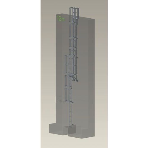 | Productnaam | Complete kooiladderset, Materiaal: Aluminium, Hoogte: 12 m, Min. hoogte: 12000 mm |