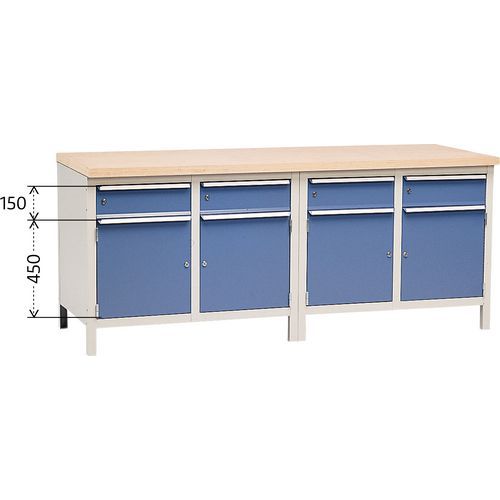 | Productnaam | Complete werkbank Modul 200 met kasten en lades., Max. belasting: 500 kg, Totale hoogte: 810 mm |