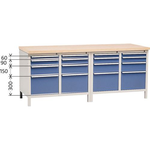 | Productnaam | Complete werkbank Modul 200 met lades, Max. belasting: 500 kg, Totale hoogte: 810 mm, Totale breedte: 2000 mm |