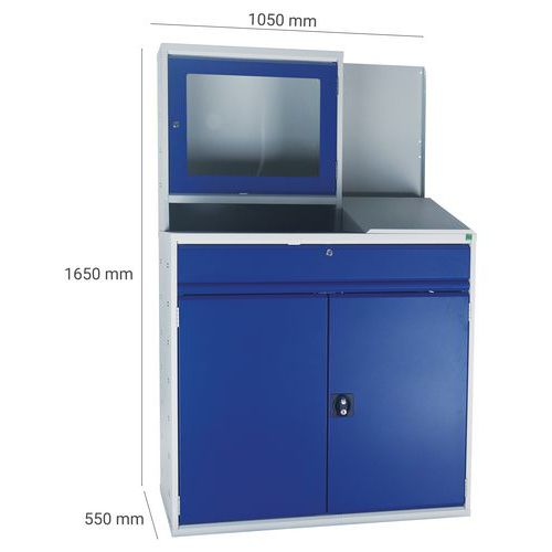 | Productnaam | Computermeubel, Max. belasting: 1000 kg, Materiaal: Staal, Totale hoogte: 1650 mm, Totale breedte: 1050 mm |