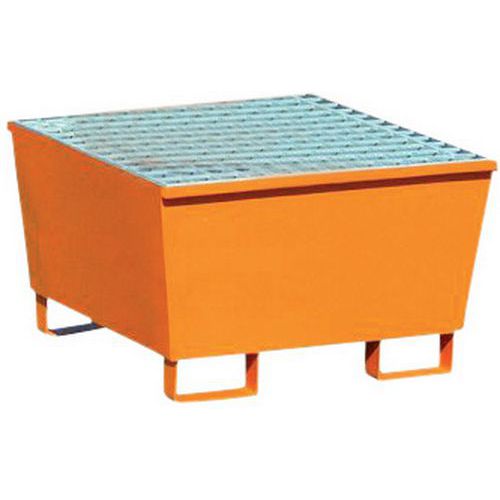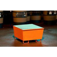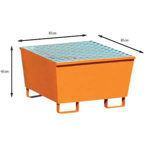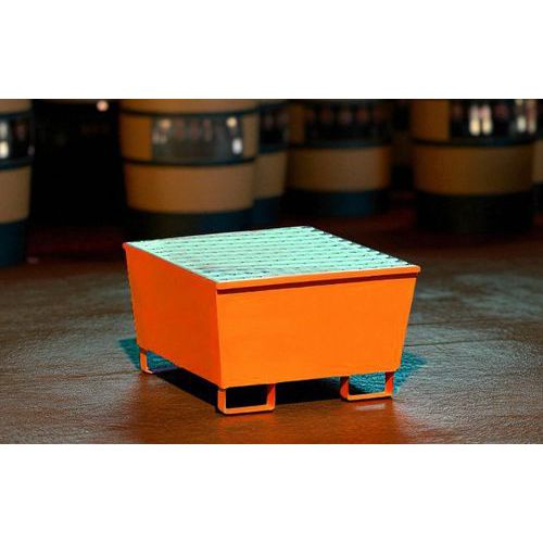 Opvangbak met verwijderbaar rooster van staal, geschikt voor 100% van de inhoud van 1 vat van 220 l. Bestand tegen belasting en opgeslagen producten. Ideaal voor het veilig opslaan van gevaarlijke producten. Deze opvangbak heeft een opvangcapaciteit van 220 liter en is perfect voor het rechtop opslaan van een vat van 220 liter. Extractie van de vloeistof gaat via de pomp. U-poten met een hoogte van 100 mm maken het doorvoeren van vorken eenvoudig en garanderen een optimale stabiliteit.
