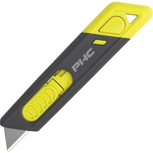 | Productnaam | Cutter met automatische intrekking, Uitschuifbaar mes: ja, Kleur: Grijs/geel, Gebruik voor voedsel: nee |