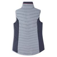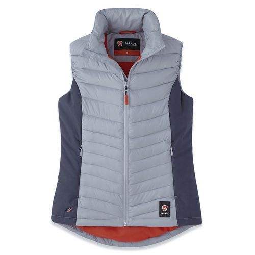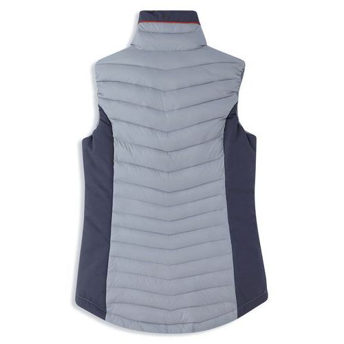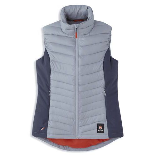 Licht donsjack zonder mouwen met 140 gr polyester dons voor het lijf en 120 gr voor de kraag.
