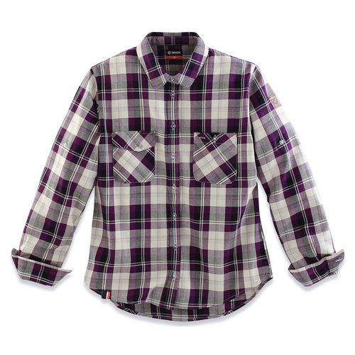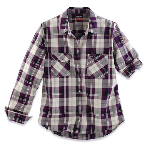 - Dames blouse met ruitjes. Van natuurlijk materiaal, met een rechte pasvorm en oprolbare mouwen met een band met drukknoop.