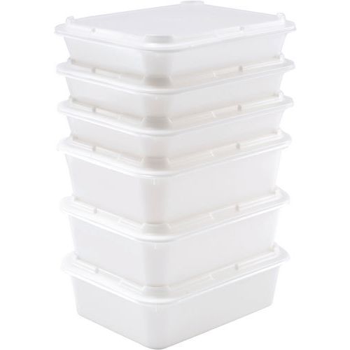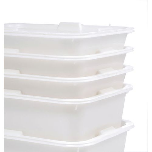 Rechthoekige deegbak. Hoge weerstand tegen temperatuurschommelingen. Flexibiliteit en hoge schokbestendigheid. Compatibel met dienbladenwagen