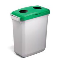 Rechthoekig deksel met scharnier voor afvalbak Durabin® 60. Met twee ronde openingen voor blikken en flessen. De clipbevestigingen worden vastgezet in de bovenste rand van de bak. Eenvoudig te hanteren dankzij de verstelbare openingshoek van het deksel.