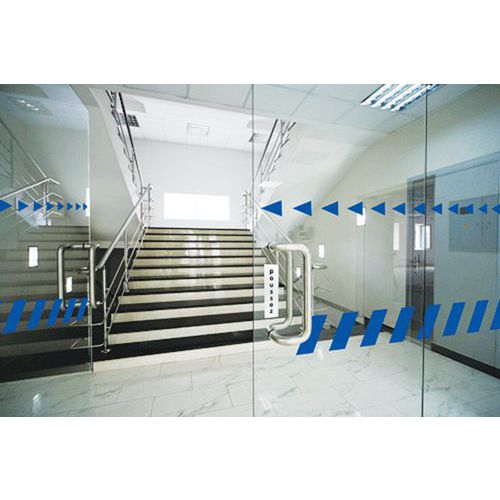 Waarschuwingsplakstrips, klaar voor gebruik. Voldoen aan de geldende normen. De strips kunnen naar behoefte op maat worden gesneden. In 2 hoogtes naar keuze: 52 of 100 mm. Gemaakt in de EU Toegankelijk voor mindervaliden