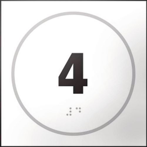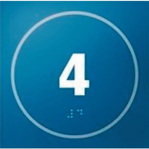 Het symbool in reliëf is gekoppeld aan een brailletranscriptie.