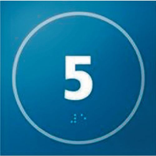 Het NUMMER 5 bord in reliëf en braille is voor alle slechtzienden, ideaal voor hotels, kantoren of andere plekken.