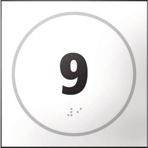 | Productnaam | Deurbord met nummer 9 in relief en braille, Zelfklevend: ja, Materiaal: PVC, Type bord: Indicatie |