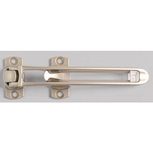 Deurketting die in rust verticaal tegen het kozijn kan worden ingeklapt. Voorzien van een geluidsdemper. Kan op een stompe deur of opdekdeur worden geplaatst.