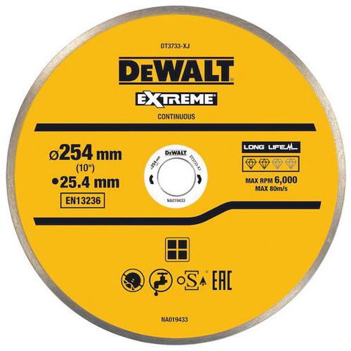 | Productnaam | Diamantblad, met gesloten rand, voor keramiek, Asgat Ø: 25.4 mm, Ø: 250 mm, Schuurmiddel: Keramiek |