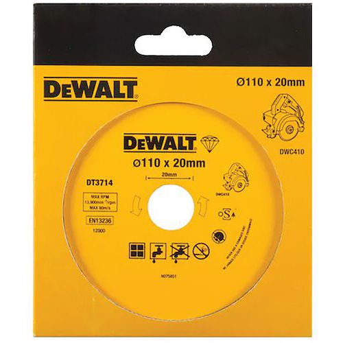 | Productnaam | Diamantblad nat en droog voor tegelzagen DT3714-QZ, Asgat Ø: 20 mm, Diameter Ø: 110 mm, Gebruik: Knippen |