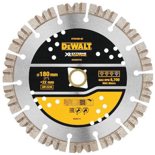 | Productnaam | Diamantblad voor zagen in beton/steen 180mm, Ø: 180 mm, Dikte: 22 cm, Gebruik: Knippen, snijden & zagen |