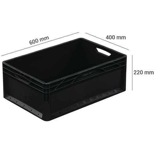 Dichte Euronorm-bak met open handgrepen, Totale inhoud: 46 L, Stapelbaar: ja, Totale hoogte: 220 mm