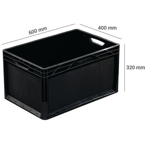 Dichte Euronorm-bak met open handgrepen, Totale inhoud: 66 L, Stapelbaar: ja, Totale hoogte: 320 mm