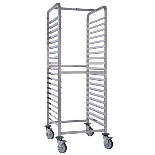 - Elektrolytisch verzinkt met gelamineerde plankenAfstand van basis tot eerste rails 285 mm180 mm tussen railsWordt geleverd met 3 planken die op 7 verschillende hoogtes gemonteerd kunnen wordenVaste handgreep op 1000 mm hoogteHandgrepen 30 mm stalen buisMax. belasting per plank 100 kg2 vaste en 2 zwenkwielen, massief rubber 200 x 50 mmCapaciteit: 800 kg