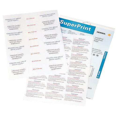 | Productnaam | Diepvriesetiketten, Aantal etiketten/vel: 24, Type: Speciaal, Lengte etiket: 66 mm, Breedte etiket: 33.8 mm |