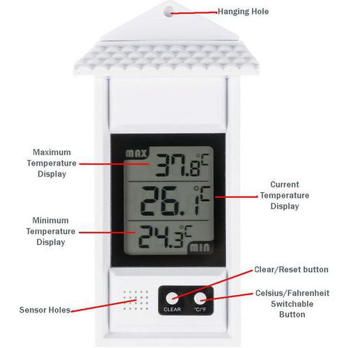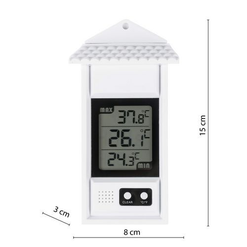| Productnaam | Thermometer digitaal, binnen/buiten, Max. gemeten temperatuur: 50 °C, Meegeleverde batterij: nee |
