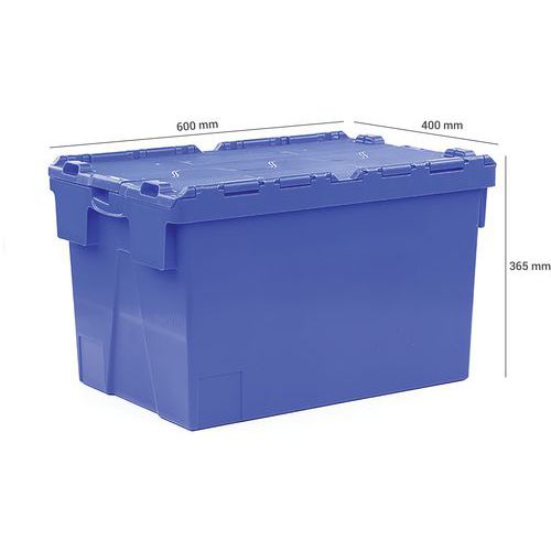 Dichte bak met gekoppeld scharnierend deksel voor een goede bescherming van de inhoud. Geen risico op verlies van het deksel. Ideale bak voor het transport van vaatwerk. Ergonomisch dankzij de geïntegreerde handgrepen aan de vier zijden.