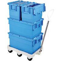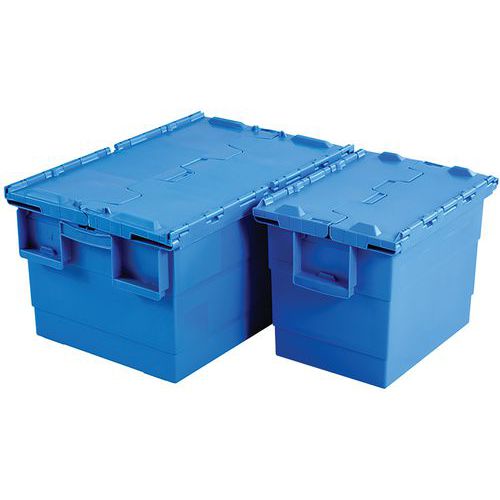 Distributiebak met geïntegreerd krokodil-deksel. Ideaal voor cateraars. Bij dicht deksel stapelbaar en bij open deksel nestbaar.