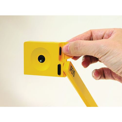 Scharnierende houder voor het wijzigen van de hoek en de hoogte en voor het overstappen op het weergavetype webcam zonder een presentatie te verstoren.