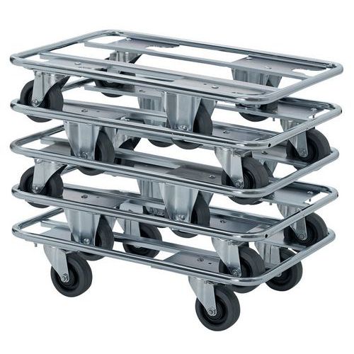 - Dolly met stalen buisframe voor zware lasten, stapelbaar en robuust met afgeronde hoeken.