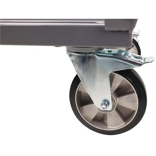 2 vaste + 2 zwenkwielen met rem