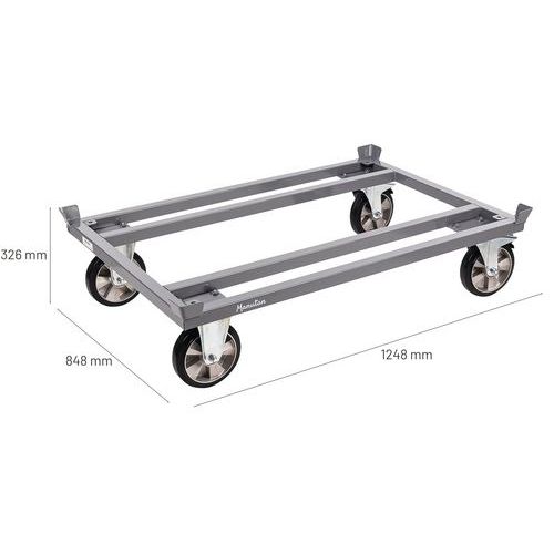 Dolly voor pallets - Draagvermogen 500 tot 1200 kg - Manutan Expert Lage dolly met zeer robuuste constructie van staal. 4 stapelhoeken voor het goed vasthouden van lading.