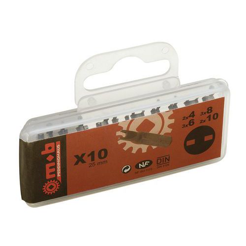 | Productnaam | Doos met 10 bits, Materiaal: Staal, Type nr.: 919I991401, Rijkantje: 1/4, Lengte: 25 mm |