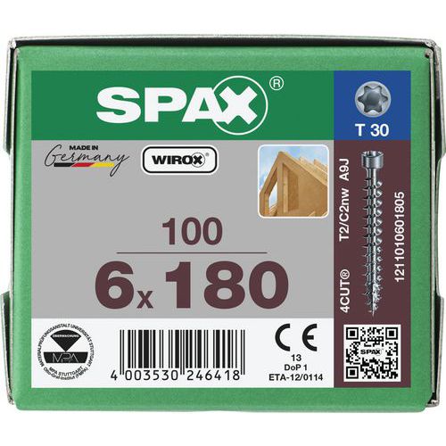 Doos met 100 houtschroeven met cilinderkop TX Ø 6 mm - Spax