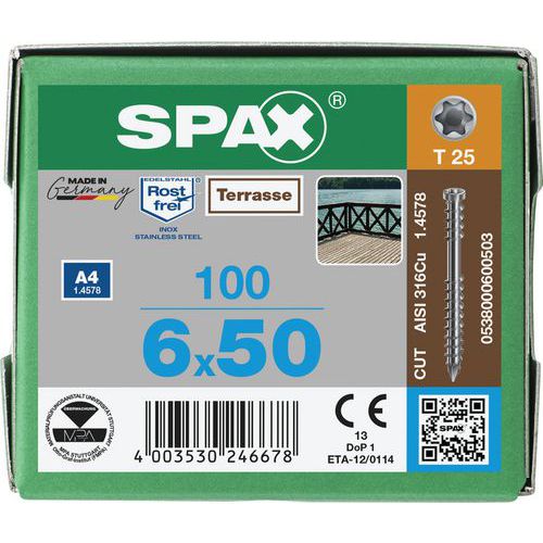 Doos met 100 terrasschroeven met cilinderkop TX Ø 6 mm - Spax