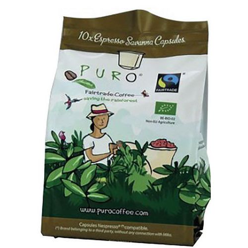Doos met 12 pakken met 10 koffiecapsules Puro.