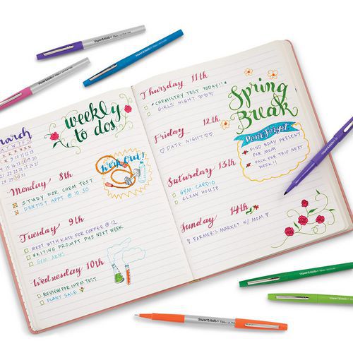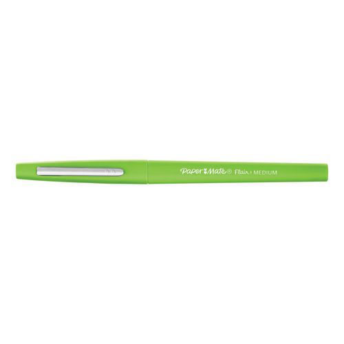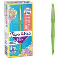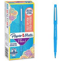 Kleurenviltstiften Paper Mate® Flair met middeldikke punt (0,7 mm), turquoise inkt, doos van 12. Inkt op waterbasis die niet door het papier dringt, zodat wat u aan de achterkant hebt geschreven, intact blijft. Vlekt en verkleurt niet, voor een fraaie en nette pagina.